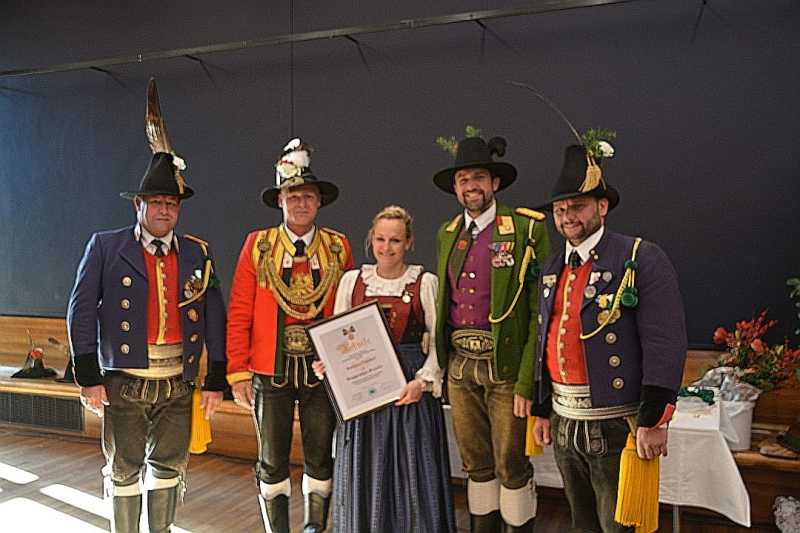 Mit dem Ehrenkranz des Bundes der Tiroler Schützenkompanien für ihren Einsatz über viele Jahre wurde die Frau des Hauptmannes Martina Mayr ausgezeichnet.